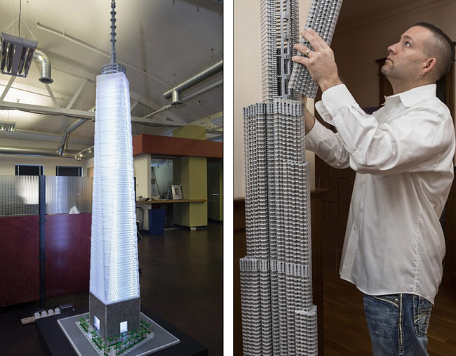 左图是塔克搭建的世贸中心一号大楼,右图是迪拜的哈利法塔。(网页截图)