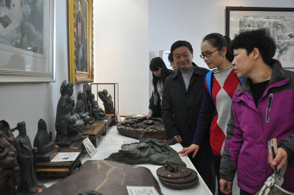 女盟员们流连于溪砚展览大厅,饶有兴趣地对溪砚进行了品鉴。