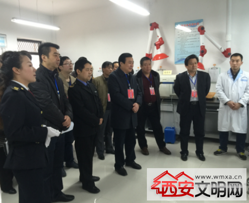 图为:县政协主席白安选(右四)一行视察县食品检测中心