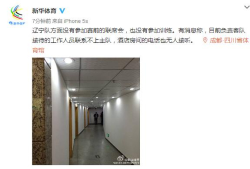 中新网3月18日电 在CBA总决赛第三场赛后,辽宁球员与四川球迷发生冲突。昨天一度传出第四场要延期,但最终确定还是如期进行。但今天上午,事情又出现变故。来自新华社体育部官方微博的消息称,辽宁队缺席了原定训练,也没有出席赛前联席会,负责客队接待的工作人员也联系不上他们。