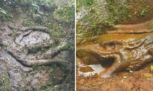 石龙左侧的一块石头上,按原状复制的石虎也已受损。
