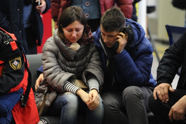 3月19日,在俄罗斯南部城市顿河畔罗斯托夫,坠机乘客的亲属在机场等候。新华社/卫星社