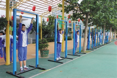 “目前已经使用了三四代”,上述密云区教委相关负责人说,实践证明,这个“增力器”对于提高学生上肢力量很有帮助,学生很感兴趣,目前已在全区试用。