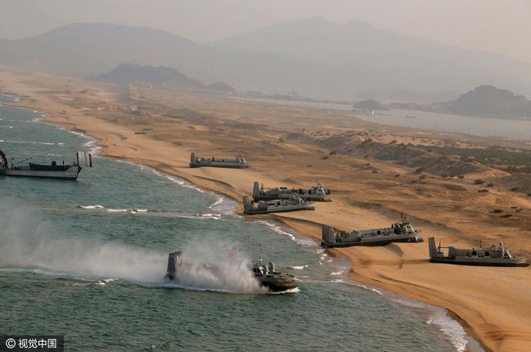 2016年3月20日消息,据朝中社,朝鲜军队实施了针对韩军的登陆及反登陆防御演习,朝鲜最高领导人金正恩观摩了演习。朝中社并未透露演习实施的具体日期,但分析认为朝鲜的演习时间为本月18日,正好为韩美“关键决断”(KR)联合军演结束的日期。(KCNA/视觉中国)