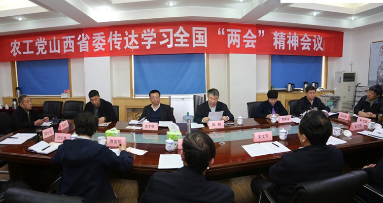 2016年3月18日下午,农工党山西省委会召开会议传达学习全国两会精神。全国政协委员、山西省人大常委会副主任、农工党山西省委会主委周然主持会议并传达全国政协十二届四次会议精神、习近平总书记在参加全国政协十二届四次会议民建、工商联委员联组会上的重要讲话精神和农工党中央关于认真学习贯彻全国两会精神的通知,全国人大代表、农工党山西省委会副主委郭新志传达了十二届全国人大四次会议精神。农工党山西省委会副主委张李锁、牛三平,秘书长王喜华,在并常委王象礼、宋文军、闫润红,专委会主任燕美琴、张立伟和省委会机关全体干部参加会议。