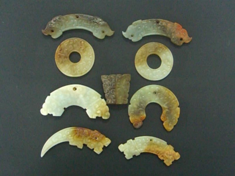 首先我想谈的是:高古玉、古玉及现代玉的选材,目前我国所出土玉器,所选用的玉材繁杂,多为和田玉、南阳玉、岫玉以及未知的其他地方玉,很大一部分玉矿我 们根本分 辨不出它的产地及品种,尤其是高古玉,它入土时间较长,受时间及墓葬地的复杂情况影响较深,会被土壤和其他矿物影响其本身的分子结构,从而改变本身的质 地,玉器出土后,土蚀土沁及风化的现象特别明显。我认为在高古玉时期,南阳玉应该是被广泛使用的,其一,因为其所在的地理位置,南阳玉出产自河南南阳的独 山,在遥远的古代运输能力差,工匠们多半会就地取材,采挖地理位置比较近的南阳玉,这样相较于从遥远的新疆取材玉料,更能提高工作效率。其 二、南阳玉的硬度在6~6.5之间,密度在3.29左右这些数值与和田玉相近,呈色有77个色彩类型,这与岫玉的多色性相近,根据这些特点,目前所 出土的硬度较高、呈色纷杂的大件玉器应该就是南阳玉所制作。现在大部分出土的高古玉,人们按照玉质、器型、出土地点等因素将之归为和田玉、南阳玉或岫玉, 硬度高的就归为和田玉、呈色繁杂的硬度相对较低的归为南阳玉或岫玉,这种归划方式应该是不完全的,有资料证明古代的玉矿数量达到上百个,在高古玉时期,玉 矿的种类及数量应该超于我们目前所知,有很多玉矿的储藏量很少,可能只有几吨至几百吨不等,玉料筛检后成材的更是寥寥无几。从出土的玉器中 会发现一些玉的硬度高、密度大,呈色多样,分子结构不清,由于墓葬地的复杂环境,单从呈色和分子结构分辨不出玉材的具体种类和产地,就此我们可以认为,当 时先人们所采用的玉材是我们所未知的,现在已经枯竭或随着地壳变动消失的玉矿。