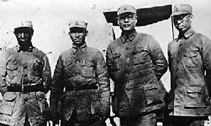 罗荣桓(右一)、陈光(左二)在抱犊崮根据地合影。