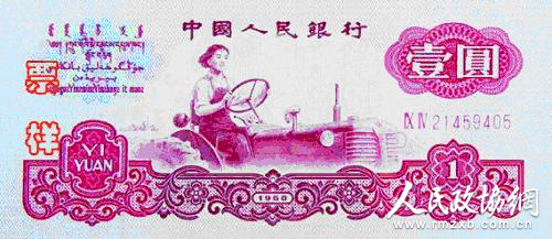 一拖生产的“东方红”拖拉机,上了1962年版第三套1元面值的人民币。