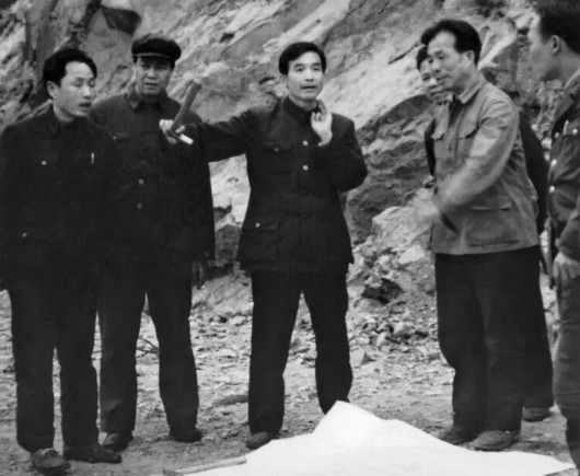 1985年4月,江西考察期间,在野外与技术人员讨论地质情况