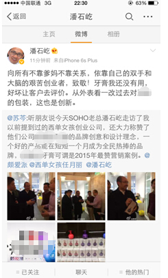 知名作家苏岑更是为西单女孩创业点赞,地产大亨潘石屹亲自试用并夸赞说:“向所有不靠爹妈不靠关系,依靠自己双手和大脑的艰苦创业者致敬”。据报道,近日,西单女孩又与董明珠共讨商业大事,这真是准备在商业圈掀起惊天大浪。