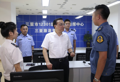 为优化旅游服务,三亚市还设立旅游警察队伍专职维护旅游市场秩序和旅游治安环境,并在三亚市民游客中心设立12301旅游调度指挥中心。在调度指挥中心,李克强向12301接线员了解优化旅游服务等情况,并通过指挥中心大屏幕与正在执勤的旅游警察互动。