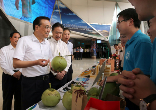 不少大学生也参与到旅游创意产业中来。一位创业大学生现场演示自己发明的“开椰器”:在椰壳上一拧,即可插上吸管喝到椰汁。李克强试用后说,这个发明虽小,但市场不小。旅游产品尤其需要创意。他鼓励展区年轻创业者,要做创新创意代表。(完)