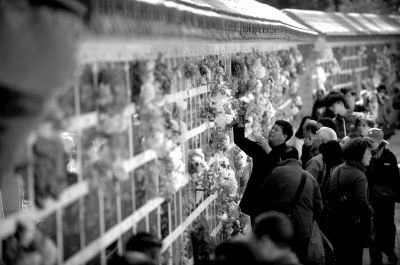 昨天,群众在八宝山人民公墓祭扫。