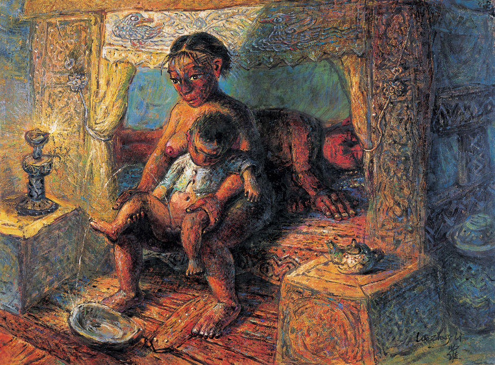 罗中立的油画艺术来源于生活又高于生活。继《父亲》之后,画家又创作了一大批表现农民生活的作品,由于他具备了深厚的生活基础,又得益于艺术的天赋和勤奋,使得这些作品能令人反复品味,深深地印记在人们的心里。