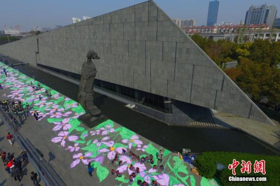 原标题:南京两百人同绘“和平之花” 祭奠南京大屠杀死难者