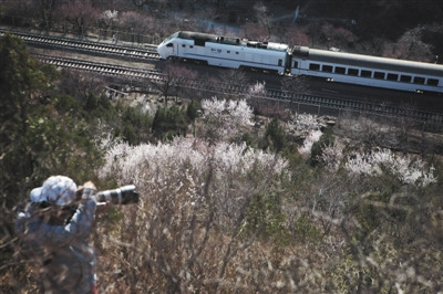 去年春天,一组S2线列车穿越居庸关“花海”的照片在网上走红。如今又到一年花开时,大批摄影爱好者来到照片拍摄地点居庸关九仙庙村取景,甚至有游客翻越护栏导致列车被逼停,3月26日起,九仙庙村进村山路被暂时封闭。