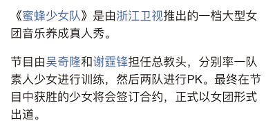 关键词:《蜜蜂少女队》 女团真人秀