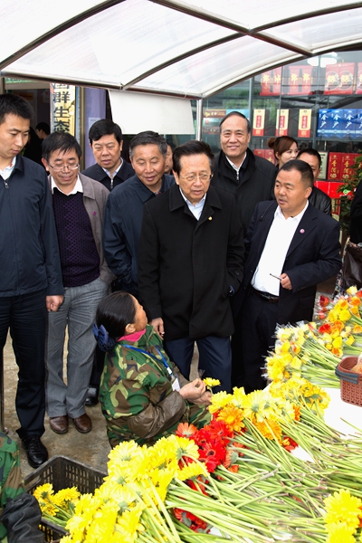 陈昌智主席向花农询问家庭情况和收入来源,鼓励他们早日脱贫