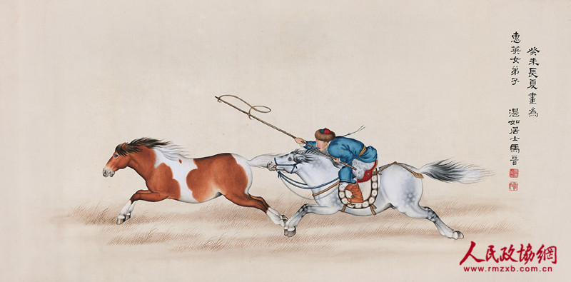 封面作品马晋《套马图》是一件极为精彩的作品,创作于1943年,是作者送给弟子惠英女士的作品?;嬉院嵯蚬雇迹副士袒?,将草原上惊心动魄的套马瞬间展现于盈盈尺幅间,观者耳边似有疾风吹过,令人不禁为之喝彩,绘画功力实在了得。此件以20.16万元成交。