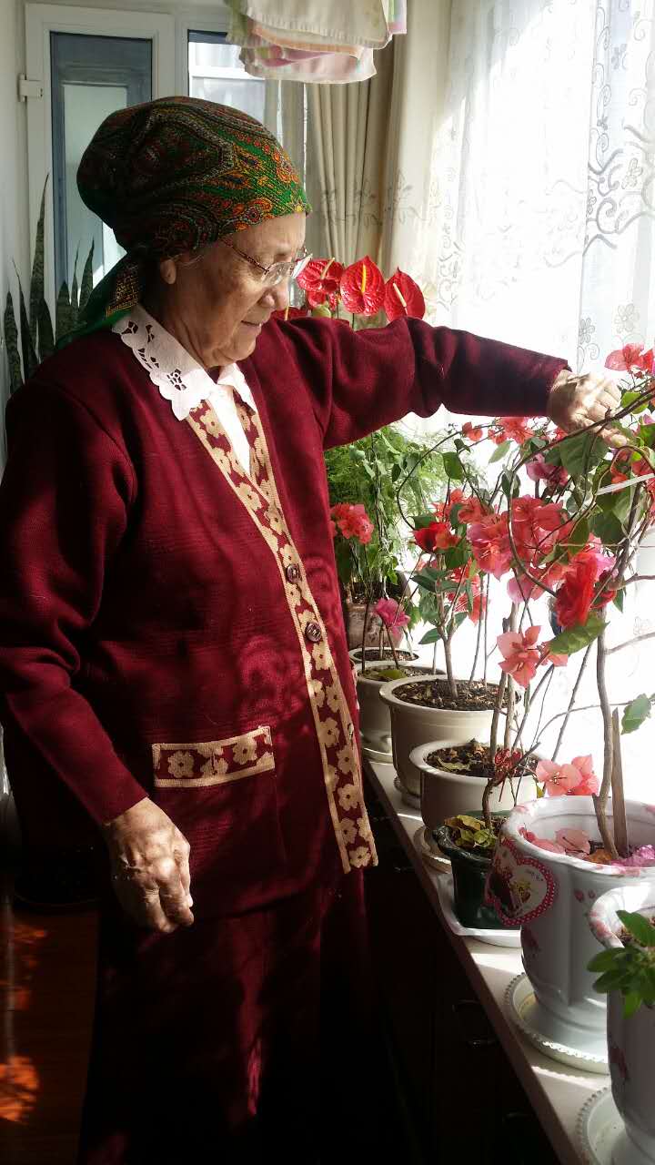 春天是鲜花盛开的季节,但是,出得伊宁机场,除了草地开始还绿和桃花绽开,所有的花花期未至,只有母亲窗前鲜花一片。母亲特别喜欢养花,过去,会在院子里种植各色鲜花,从春到秋,满院子花海如潮。后来,孩子们大了,先后成家过各自的日子去了,冬季扫雪就成了问题,于是,就将老人接进了楼房。现在,母亲将她对鲜花的爱播种在窗前。阳台上一溜摆放栽着各种花卉的花盆,扶桑、月季、芙蓉、三角梅、兰花,姹紫嫣红,把投进阳台的阳光点染,映射出七彩光芒,释放着满屋的温馨。