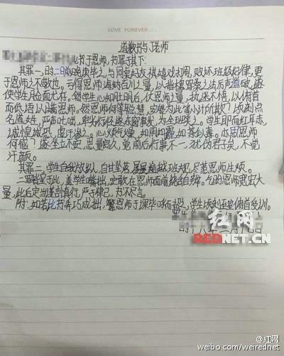 湖南初中生写古文体检讨书 老师感慨要多读书