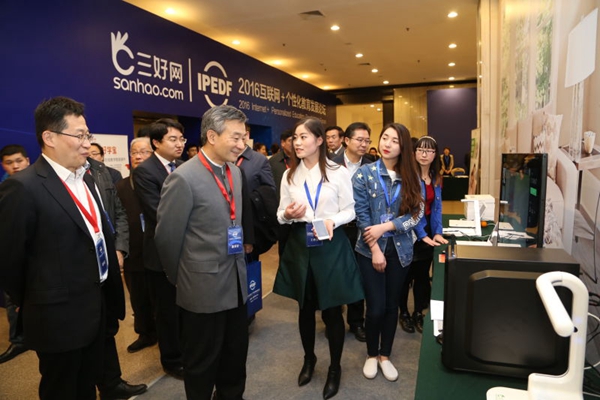 3月26日下午,全国政协副主席、民进中央常务副主席罗富和出席“2016互联网+个性化教育发展论坛”。图为罗富和参观论坛展览。