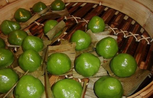 小吃特色:清明果味道青涩,馅微甜,翠绿的皮又有点淡淡的青草味,格外爽口。