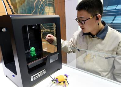 香河县机器人产业港的工作人员在演示北京汇天威科技有限公司的3D打印机 李晓果摄