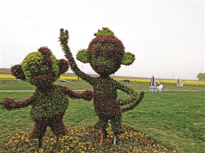 南京六合区龙袍街道农田里,按坐标种植的小麦、油菜花组成了一幅美丽的“龙袍”、“二龙戏珠”图案,带动农家乐火爆;浦口区永宁千亩油菜田里,一张娃娃大笑脸喜迎四方来客前来赏“脸”,带火乡村旅游点。