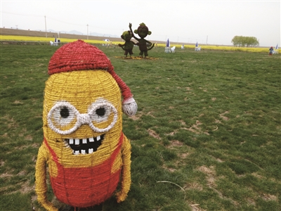 眼下正是南京多地金灿灿油菜花盛开的时节,不少地方创意迭出,用卡通笑脸、迷宫等方式打造别具一格的田园文化。同样火爆起来的还有南京浦口永宁街道张圩社区农田,用稻草扎出动物造型,可谓创意十足趣味浓,让人看了萌萌哒。走进滁河边农田里,清明小长假虽然下雨不断,但前来这里赏油菜花、看农田美景的市民还是不少。