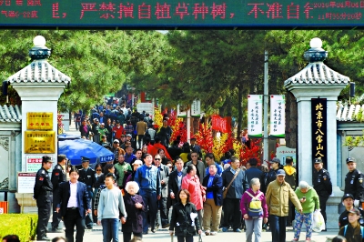 北京市民政局介绍,自3月19日到4月4日,全市共接待祭扫群众385.9万人,疏导车辆65.8万辆,同比分别增加4.92%和3.79%。