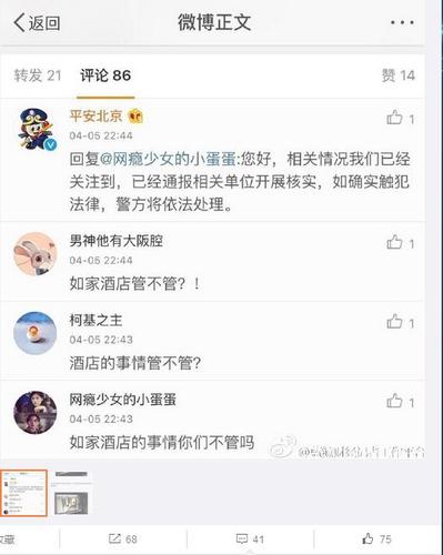 中国网4月6日讯 网友@弯弯_2016 微博爆料称,4月3日晚,她在北京某知名连锁酒店的房间门口,遭遇陌生男子袭击,险被劫持。她向服务员求救,服务员以为是两口子在吵架。幸好有路过房客出手相救才脱险,陌生男子看人多便逃走了。整个过程持续5、6分钟左右。网友已报警,@平安北京评论回复正在核实。