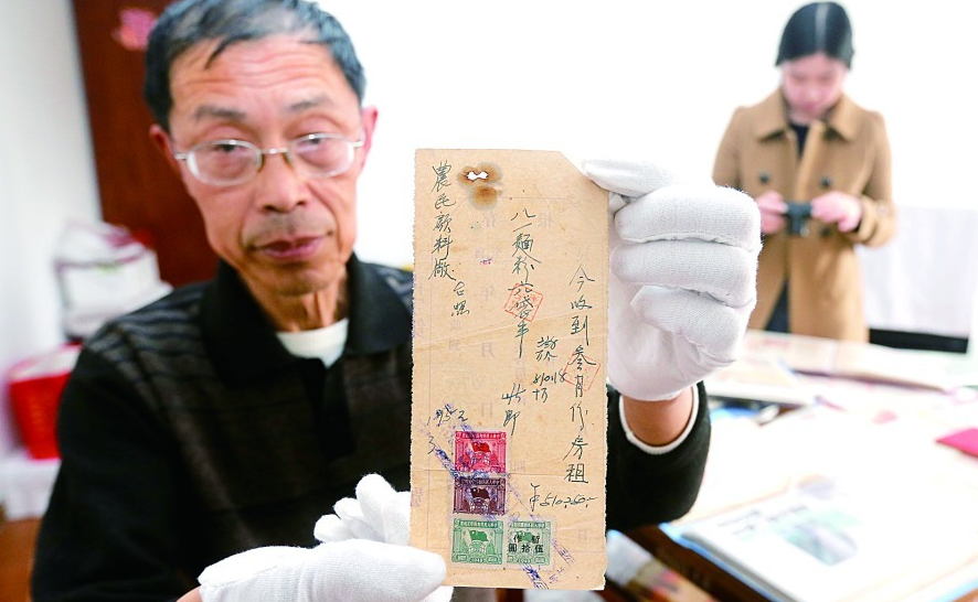 在毕连奎家中,记者见到了他多年来的收藏成果——堆满半屋子的老票据:从车船票到电影票,从水电收据到银行存单,从地契房契到公园规划,从政府文件到外交文书……每一张票据都带着时代的鲜明印记,慢慢翻来让人感慨万千。