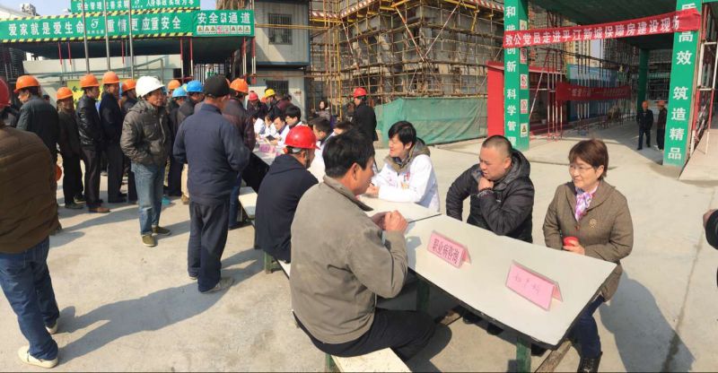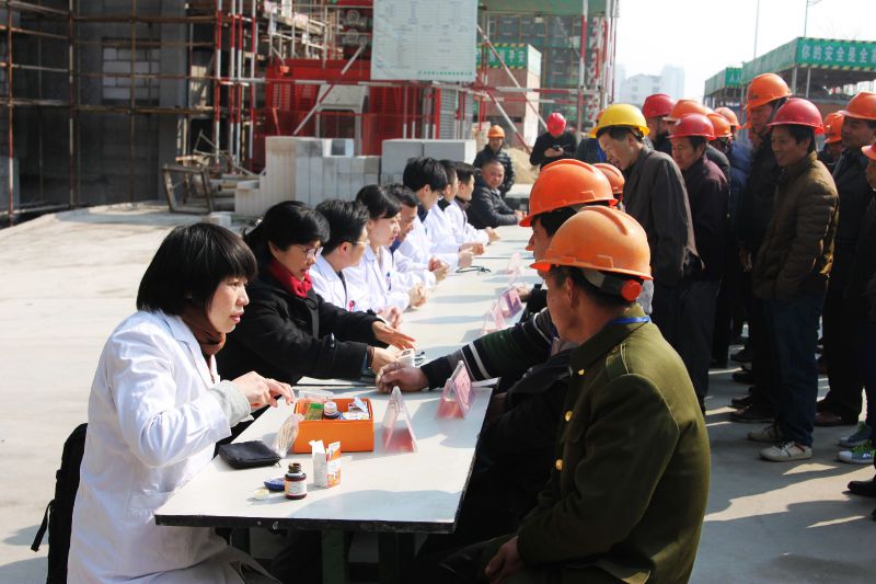 3月12日上午,平江新城保障房建设现场建筑工人头攒动,一支由致公党沧浪苏州市委组织的来自苏大附一院、苏州市立医院、广济医院等医疗机构的医疗专家队来到了建筑工地现场,为这些工作在建设一线的建筑工人们带来了医疗援助服务。这些专家是分别来自致公党苏州市委沧浪三支部、苏大二支部、金阊一支部的党员志愿者。