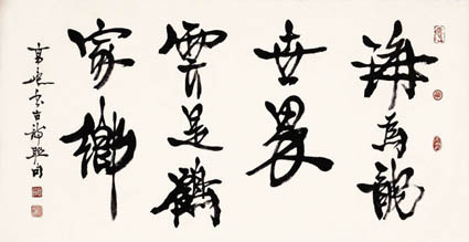 没几天,著名收藏家张伯驹、王樾等人来访,齐白石很高兴地谈起送了两幅作品给毛主席的事。当说到“海为龙世界,云是鹤家乡”篆书对联时,张伯驹不由自主“啊”了一声,原来此联写错一个字。出自清代安徽完白山人邓石如之手的后一联原名为“天是鹤家乡”,而齐白石却写了“云”。齐白石经张伯驹提醒,马上紧张起来。毛主席是博览群书通晓古今的大学问家,我竟然送他一幅错字对联,不但对毛主席不恭敬,传出去岂不贻笑大方!