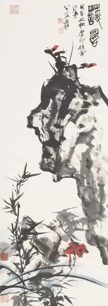 关山月 群鸡图 纸本镜心 尺寸:127×52.5cm