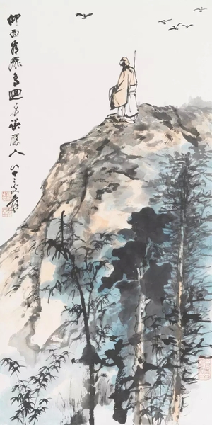张大千 仰望飞鸟 纸本镜心 尺寸:90×45cm