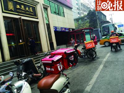 东方新天地北侧临街的便道上停了很多送餐的电动车 摄/记者 柴程