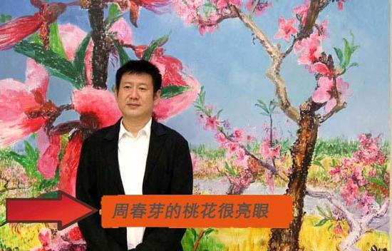 此次事件的关键在于,作为国内资深画家、市场卖价堪称大牌的艺术家周春芽的作品也不像吹嘘得那样好,尤其是《桃花》系列,总体上也属于应物象形 的初级描绘阶段。从艺术表现力上看,除了比王珍凤画得熟练一些、用笔及用色老到一点之外,二者基本属于半斤八两。如果用国内一流艺术家的标准来衡量他的桃 花,无论从造型的摄影化、色彩的媚俗化还是表现对象的客观化,其实是堪称平庸的作品。而且周春芽的绘画还不能称为当代艺术。当代艺术贵在观念性和切入社会 化的思维方式,并以总体化的艺术方法来呈现。当代艺术已经不完全停留在惯常审美和形式创造的层面上,它更多的是承担着对人类文化机制质疑、破坏和重建的重 任。目前国内绝大部分以客观还原自然物象为主的写实性绘画根本不能归于当代艺术的范畴之内。从他的艺术形态上讲,他的绘画最多处于现代主义的早期阶段,有 一些表现主义倾向但并不很明显。但从表现题材和内容的选择上,无论是“绿狗”、“太湖石”还是他引起争议的“桃花”系列油画,显示出的则是较为庸俗的艺术 品位。
