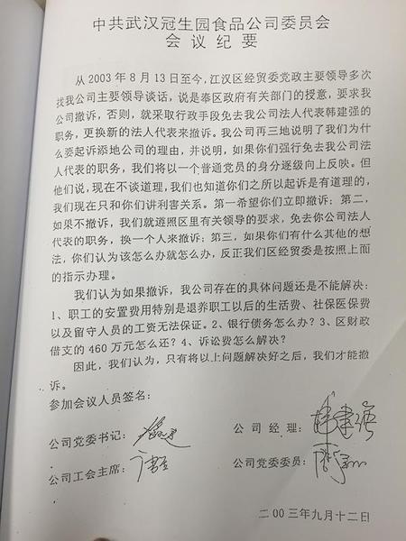 韩建强表示:“我作为当时的法人代表,我有责任。我意识到这个事情不对,搞错了的时候,我诉诸于法律,为什么不让我打这个官司?而且这个官司都已经开庭了,当时律师说的很清楚,我的胜算是95%以上,完全可以打赢。当时的领导不让我们打,强行把我的职务免了,撤诉?!?/p>