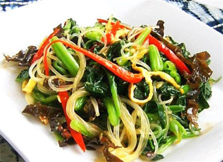 菠菜根味苦,口感绵甜,营养丰富,加入菌类、坚果、豆制品,营养互补。而且,粉丝可吸收蔬菜水分中的营养。