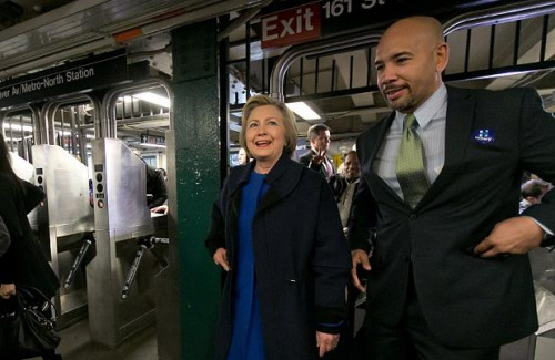 关键词:希拉里 纽约乘地铁
