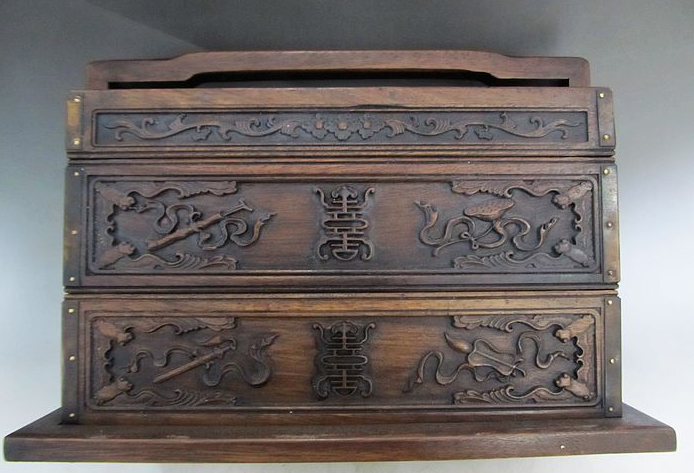 食盒作为古旧家具类,在当今的藏品市场上颇受青睐。但需要注意的是,有一些材质普通、工艺无甚特色的食盒,并无太大的收藏价值。收藏食盒须从材质、时代以及是否具有艺术价值等多方面进行评估,方才稳妥。