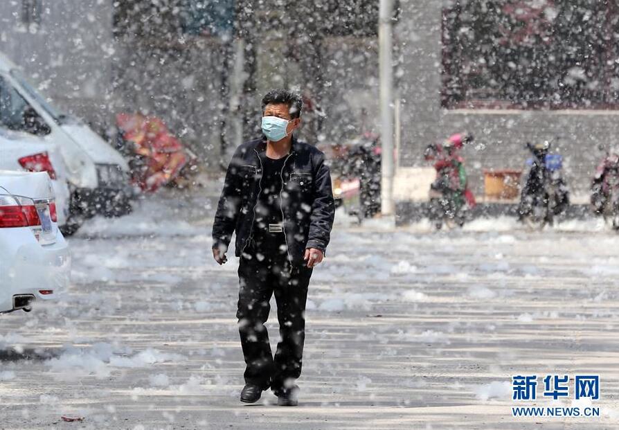 4月9日,山东潍坊市民在漫天飞舞的杨絮中出行。随着气温不断攀升,山东潍坊市区不少栽种杨树的地方开始飘“雪”,漫天飞舞的杨絮给人们出行带来不便。 新华社发(张驰 摄)