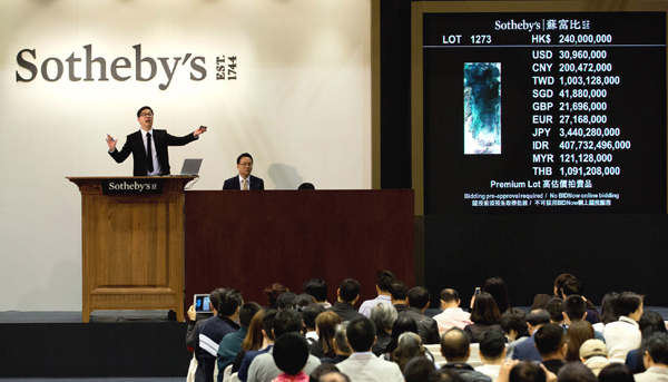 吴冠中的《周庄》拍出2.36亿港元,张大千的《桃源图》拍出2.4亿港元,崔如琢的《飞雪伴春》拍出3.068亿港元……