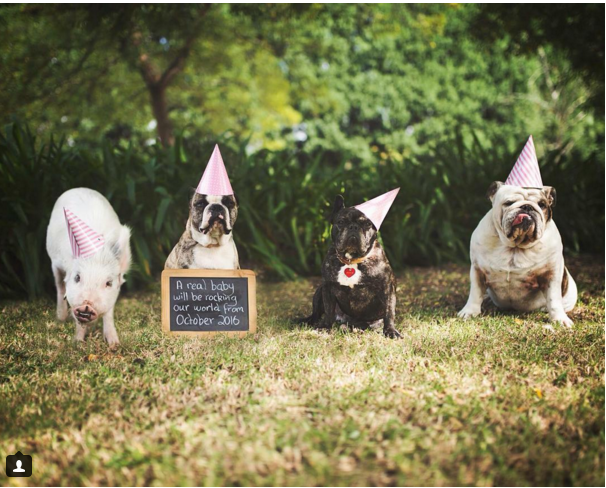 据互联网新闻博客Mashable报道,在澳大利亚悉尼有一个半乡村式的农场,那里住着一群不太“搭调”的动物们。八个月大的小猪奥利弗(Olive)和一群小狗成为了朋友,其中包括英国斗牛犬缇利(Tilly)、波士顿狗埃尔夫(Alfie)、法国斗牛犬罗拉(Lola)。他们的主人艾丽莎(Alissa)和尼克-查尔德(Nick Childs)会经常打扮他们并给他们办party。