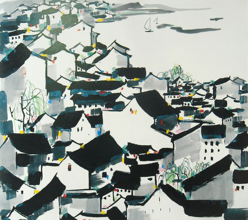 《周庄》贯通吴冠中风景油画和设色纸本两个序列