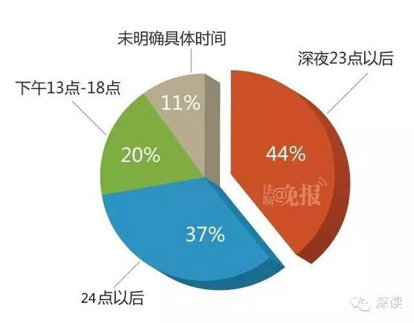 其中案发时间在深夜23点以后的,有20起,占44%,占比最高。