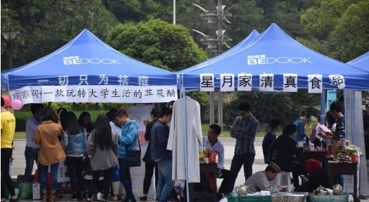记者在该??吹?,“互联网+”服装租赁、创意礼品定制、清真食品专卖等专柜依次排开,创业团队成员忙着向学生推介产品。