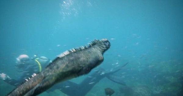 海鬣蜥在海水中寻找食物的时候,恰巧碰到一位潜水者正在举着微型摄像机进行记录。潜水者名叫史蒂夫·温科沃斯(Steve Winkworth),之后他把这段视频传到了潜水网站上,被很多人浏览。